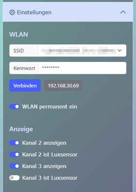 In der Weboberfläche der Wetterstation bitte unter Einstellungen die Option Kanal 2 bzw. Kanal 3 ist Luxsensor aktivieren. Ab sofort erscheint die Helligkeit im Bereich Kanal 2 bzw. Kanal 3 der Weboberfläche. Die Helligkeit wird einmal pro Minute aktualisiert.